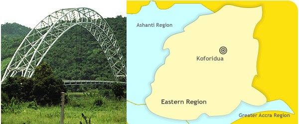 The region is famous for its natural attractions such as Boti Falls, Akaa Falls, Lake Volta, and Aburi Botanical Gardens, as well as rich cultural heritage, cocoa farms, and traditional bead-making.